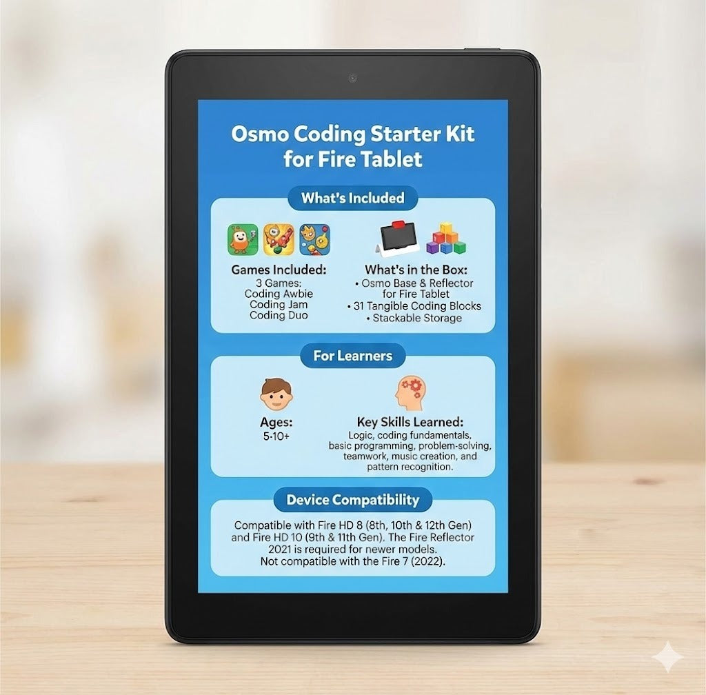 Osmo Base & Reflector for Fire Tablet• 31 Tangible Coding Blocks• Stackable Storage