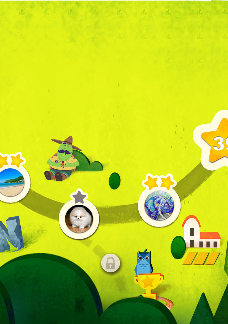 When you play Words in the Adventure mode, every puzzle you solve takes you farther on an epic expedition across an imaginary land. The more words you get right, the more levels and characters you unlock. Enjoy the journey!